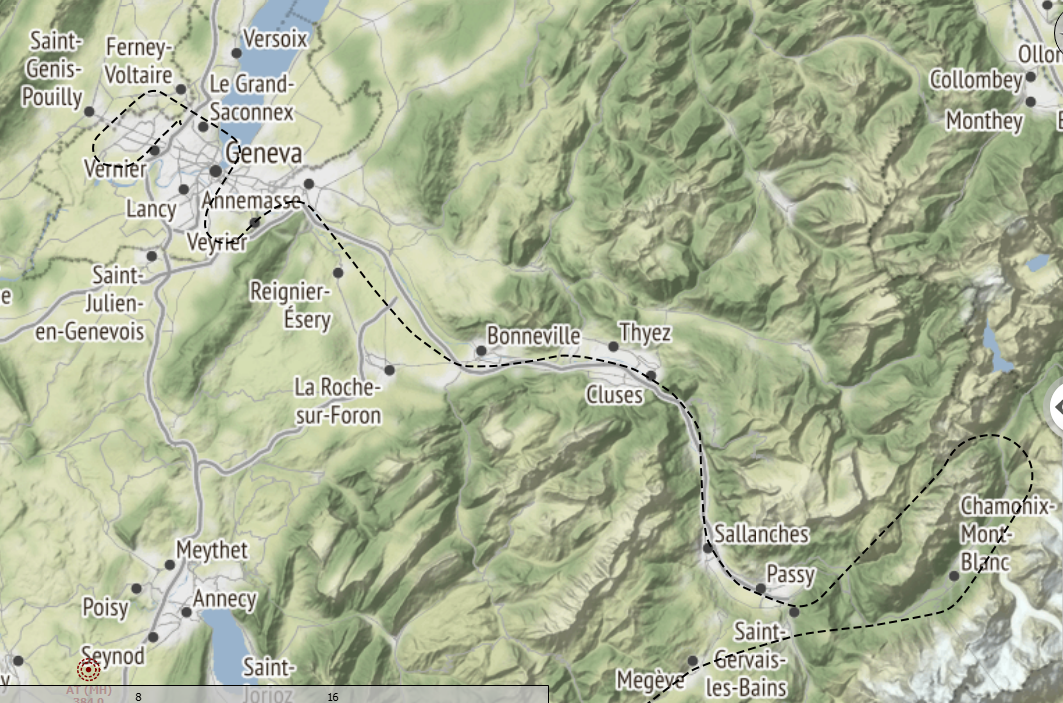 At Alberville one feels the temptation to follow the valley towards Courchevel, but Mègeve is our next waypoint. On the left, Annecy lake is a bit visible but, in front of us, the majestic Mont Blanc.