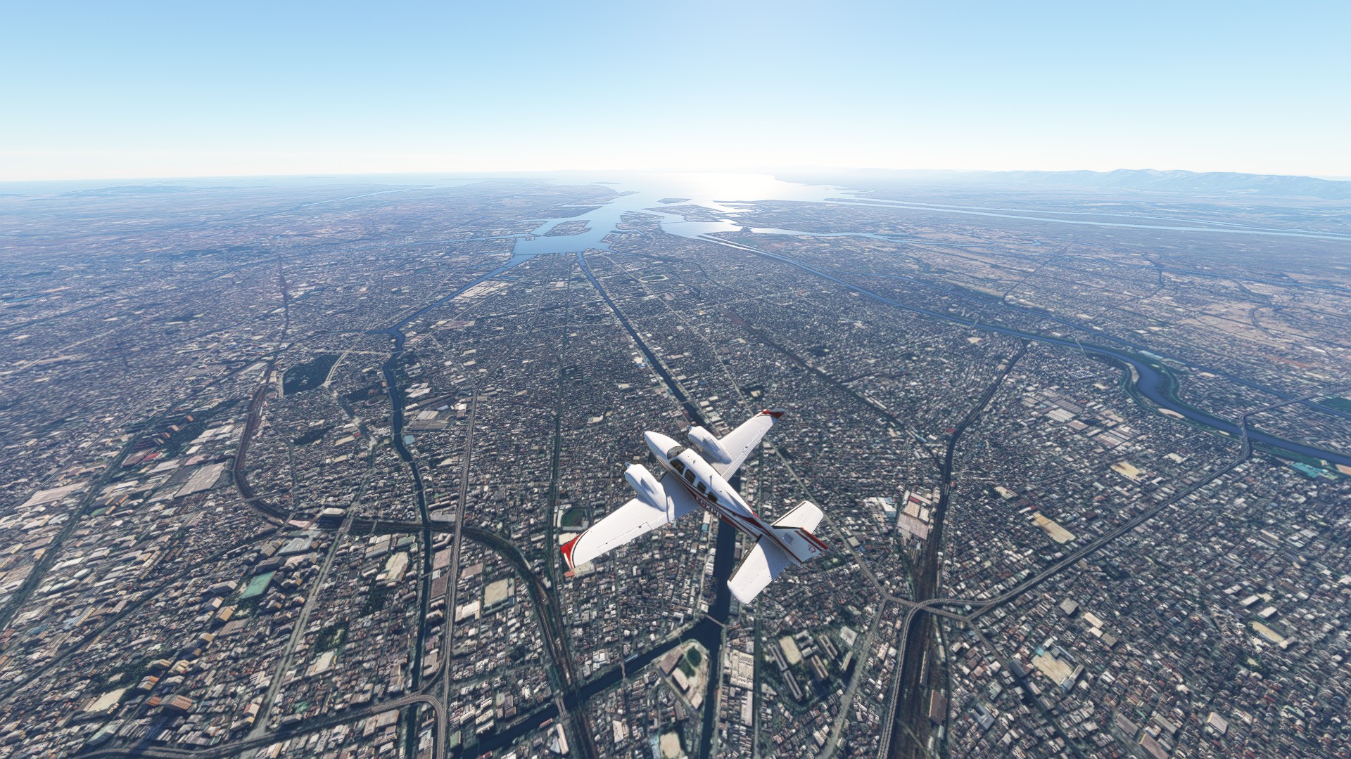 From here I flew towards Chofu. One can feel already the huge urban chaos of Tokyo and surroundings. It's very difficult to orient on VFR with the Baron over this area, so I set a virtual point with the KNS-81 RNAV system that helped me during the approach. A bit fast landing but anyway safe.
